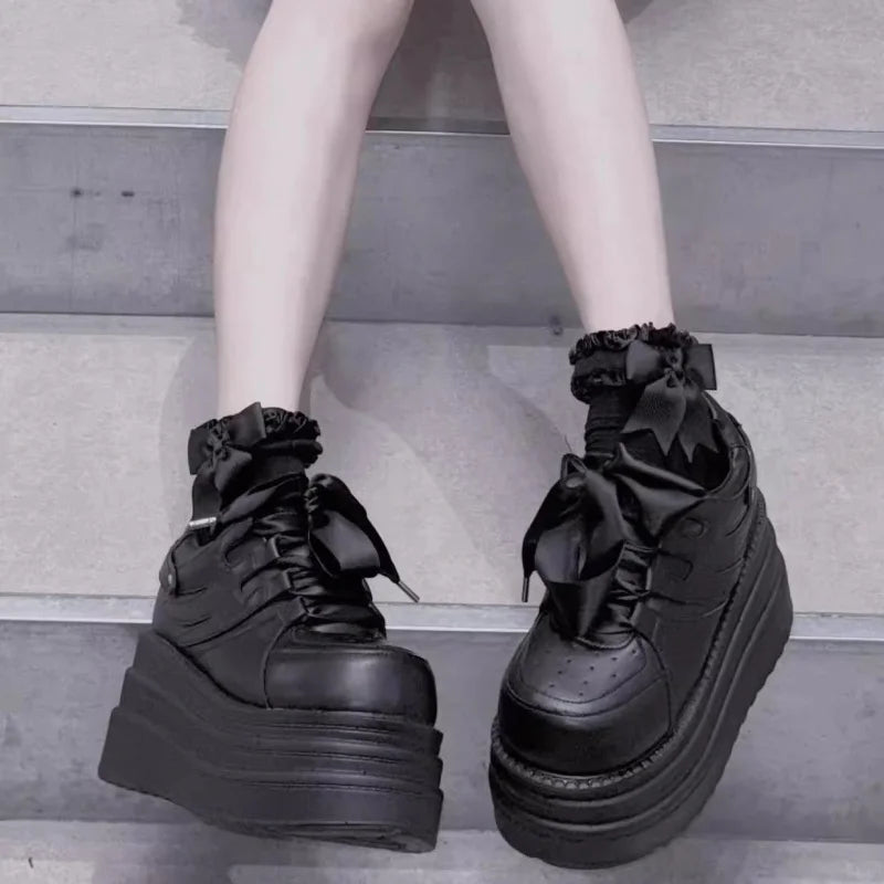 Baskets Jirai Kei à plateforme extrême avec nœud en satin noir