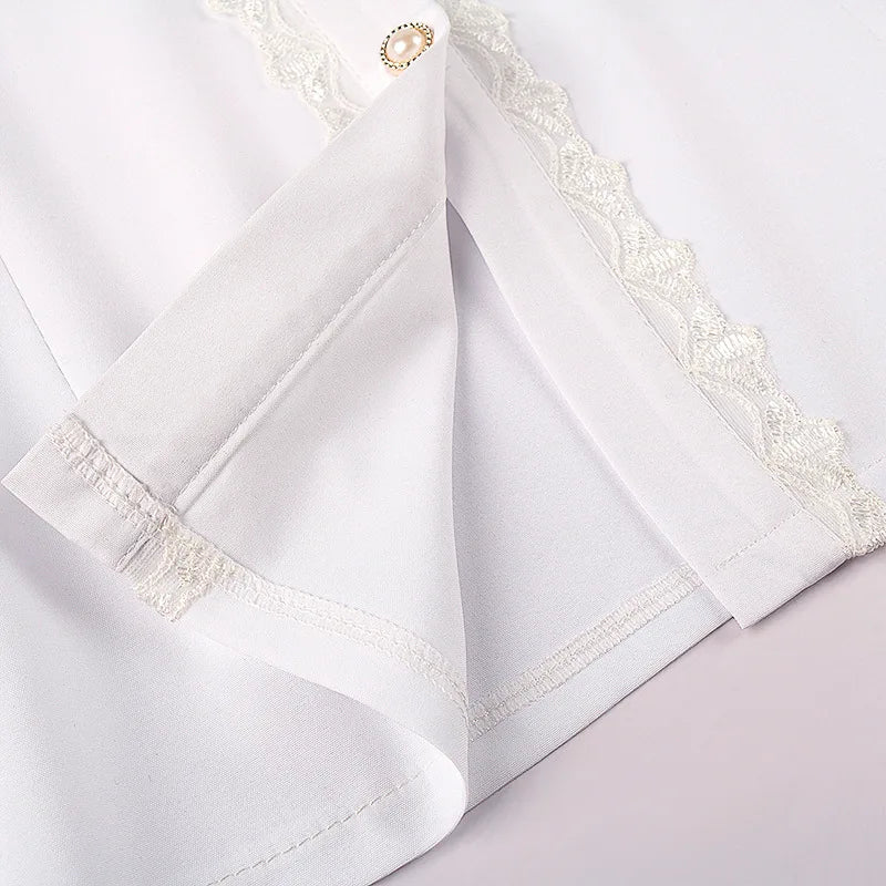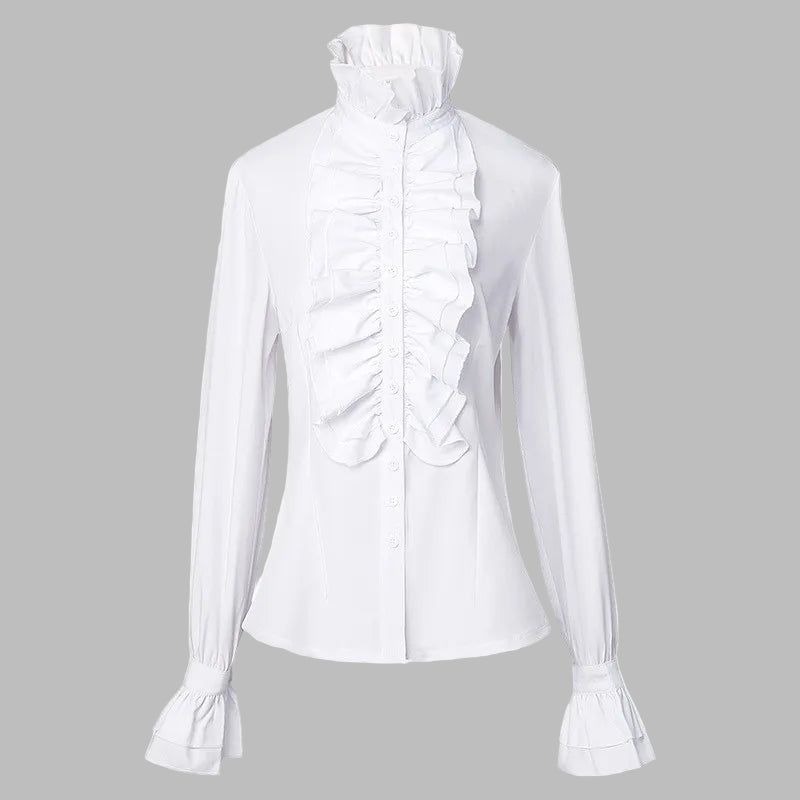 Blouse Blanche Steampunk avec Jabots et Manches Bouffantes