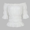 Blouse Épaules Dénudées Punk Rock à Manches Bouffantes Blanche