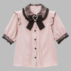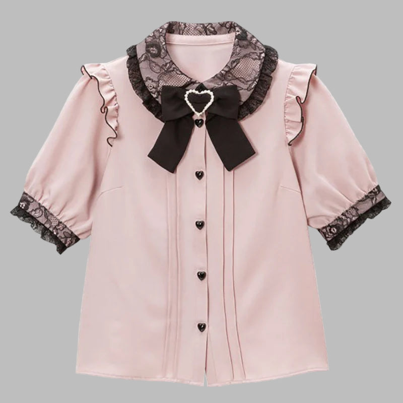 Blouse Gothique Rose avec Dentelle Noire et Nœud Décoratif Kawaii Jirai Kei