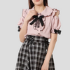 Blouse Jirai Kei Rose à Manches Courtes avec Nœud Noir