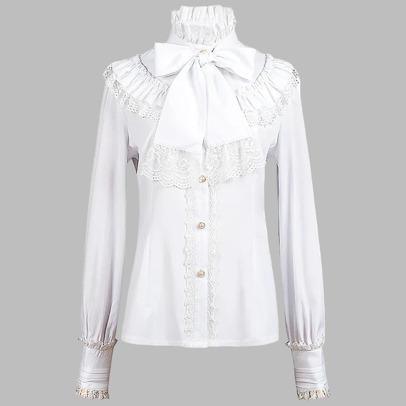 Blouse Blanche Steampunk avec Appliqué en Dentelle et Nœud XXL