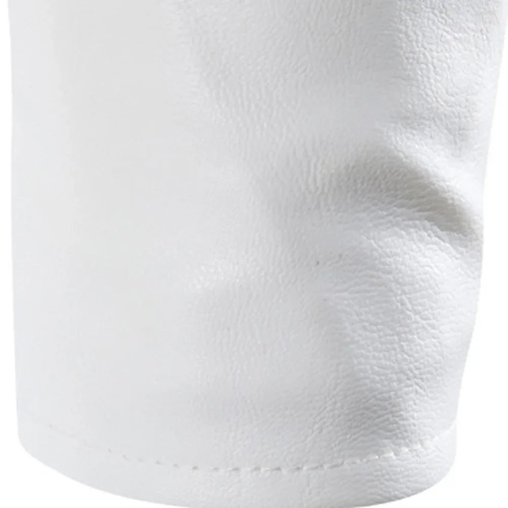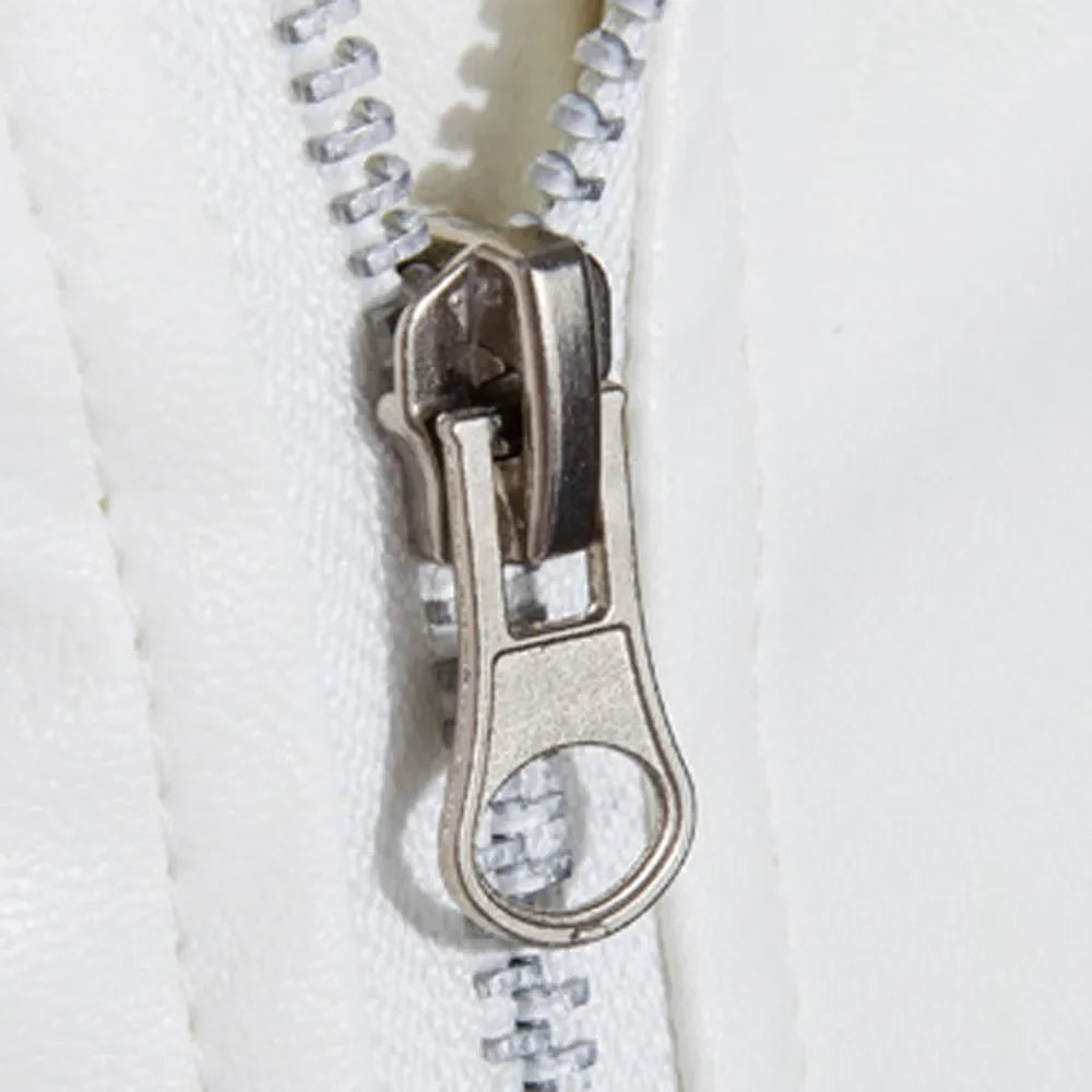 Blouson en Cuir Blanc pour Homme de Moto avec Ceinture