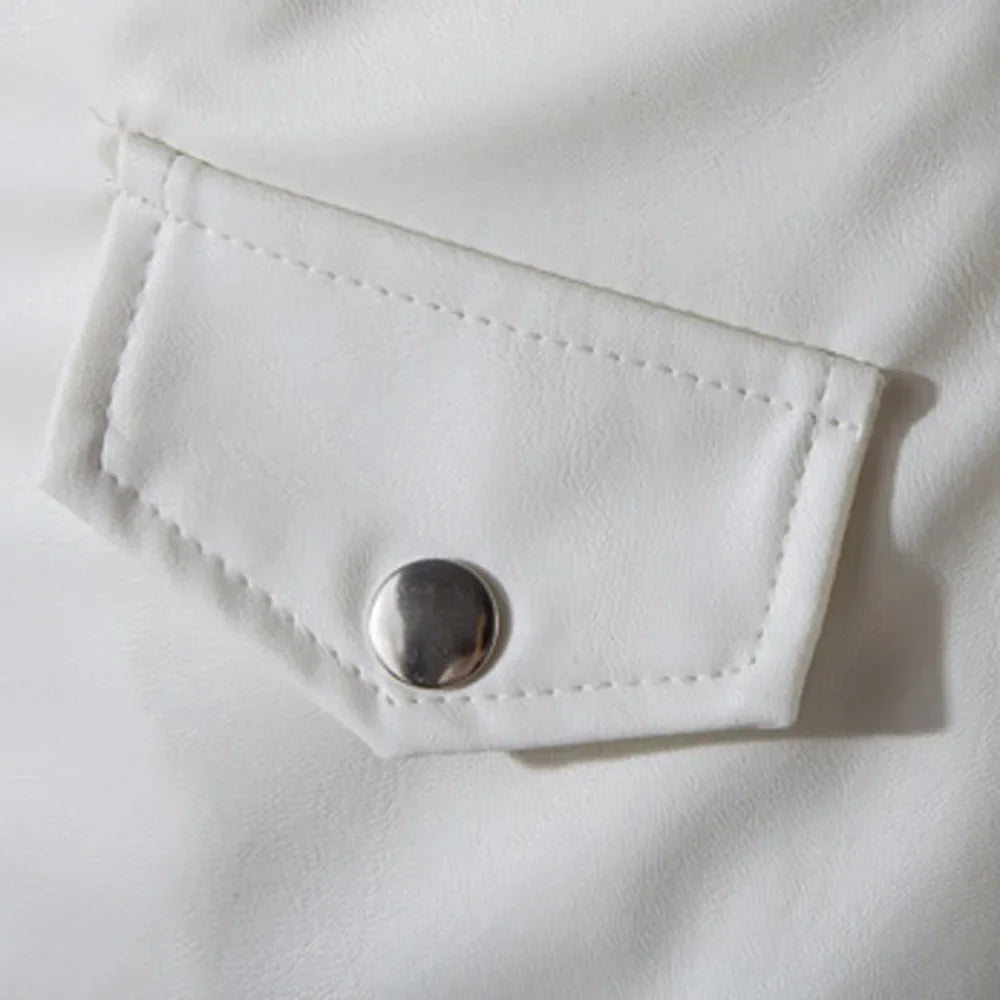 Veste en cuir blanche pour homme avec ceinture, style motard