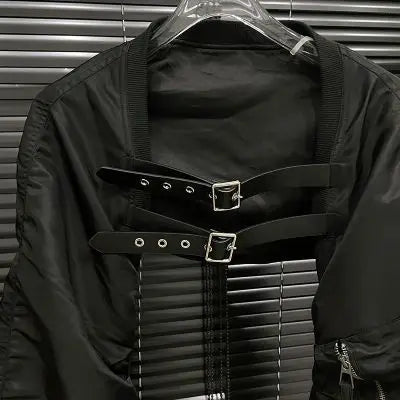 Boléro court noir unisexe Cyber Gothic Punk avec sangles et boucles industrielles