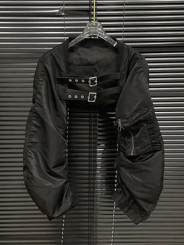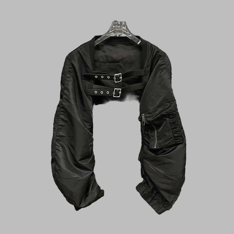 Boléro court noir Cyber Gothic Punk avec sangles et boucles industriel unisexe
