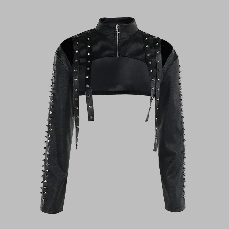 Boléro Punk Goth en Cuir Noir avec Clous et Piques