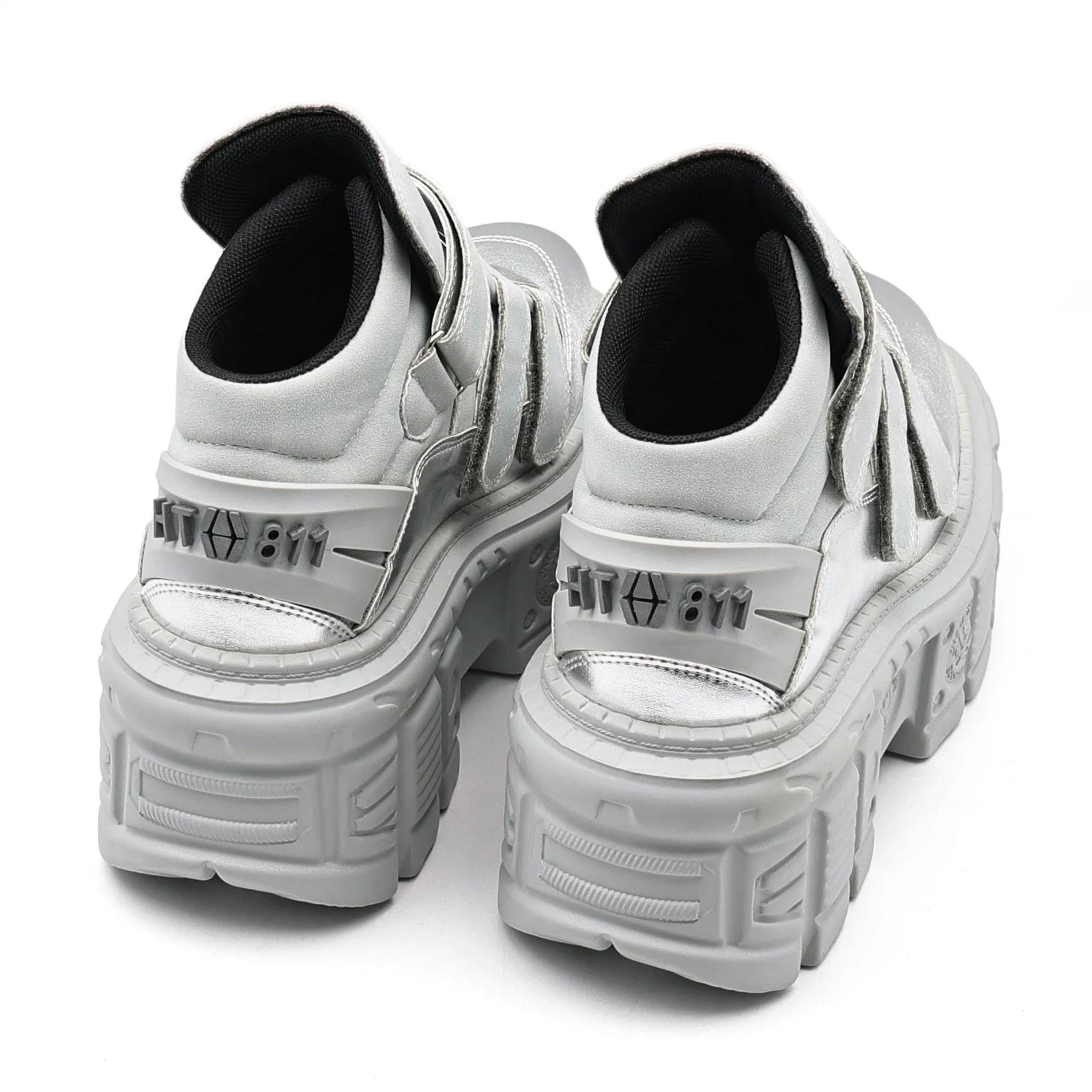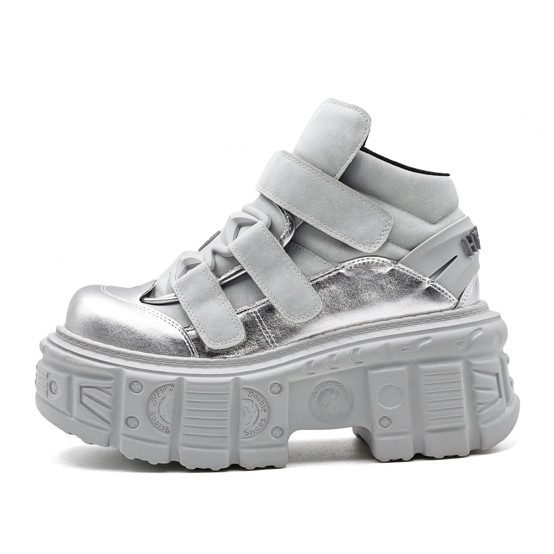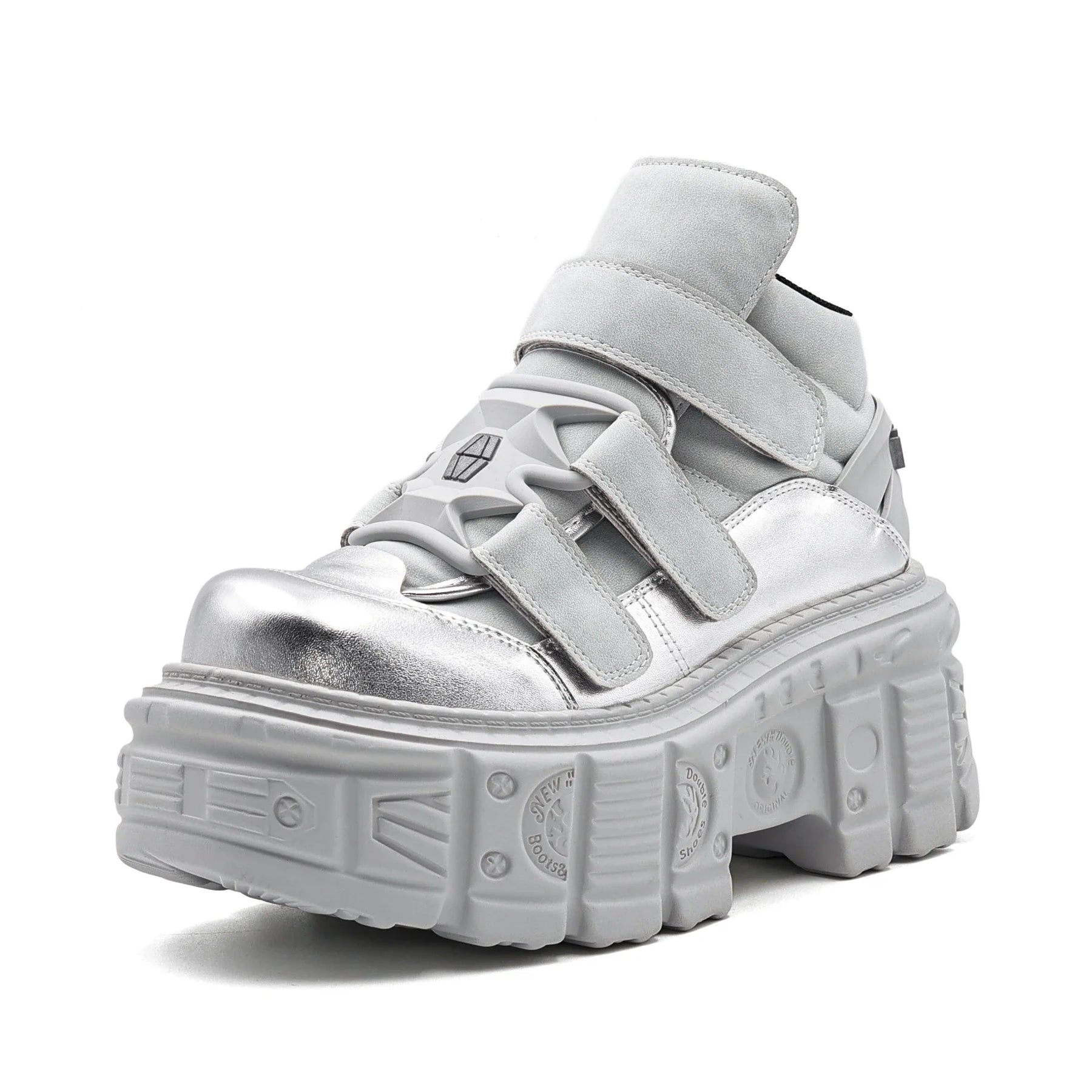 Bottines gothiques argentées à scratch avec semelle plateforme