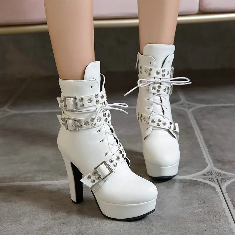 Bottines Noires à Talons Hauts avec Boucles – Style Cyberpunk