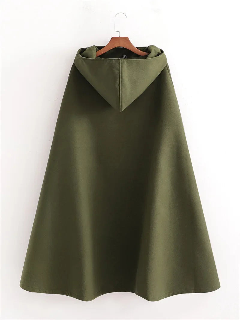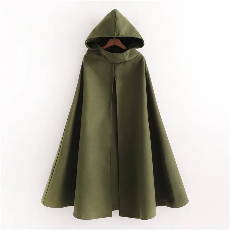 Cape mi-longue noire avec capuche – Style sorcière femme vert