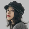 Casquette Rock Noire avec Visière en Cuir et Boucle