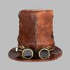 Chapeau Haut-de-forme Steampunk Marron avec Lunettes et Pointes Métalliques