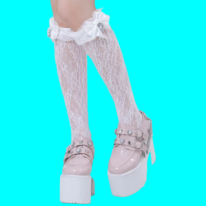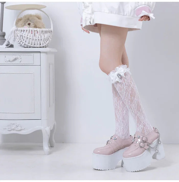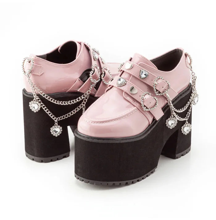 Chaussures à plateforme roses avec chaînes et clous punk rock