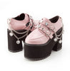 Chaussures à plateforme roses avec chaînes et clous style punk rock
