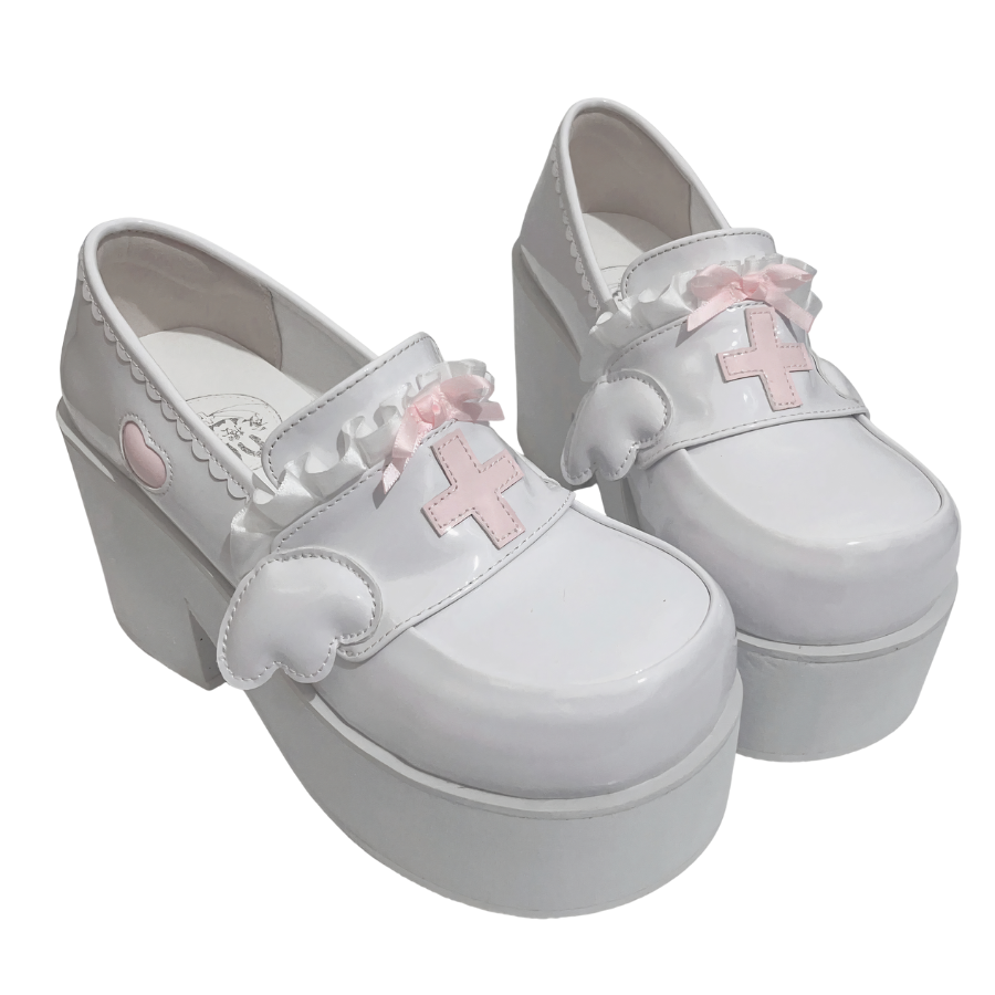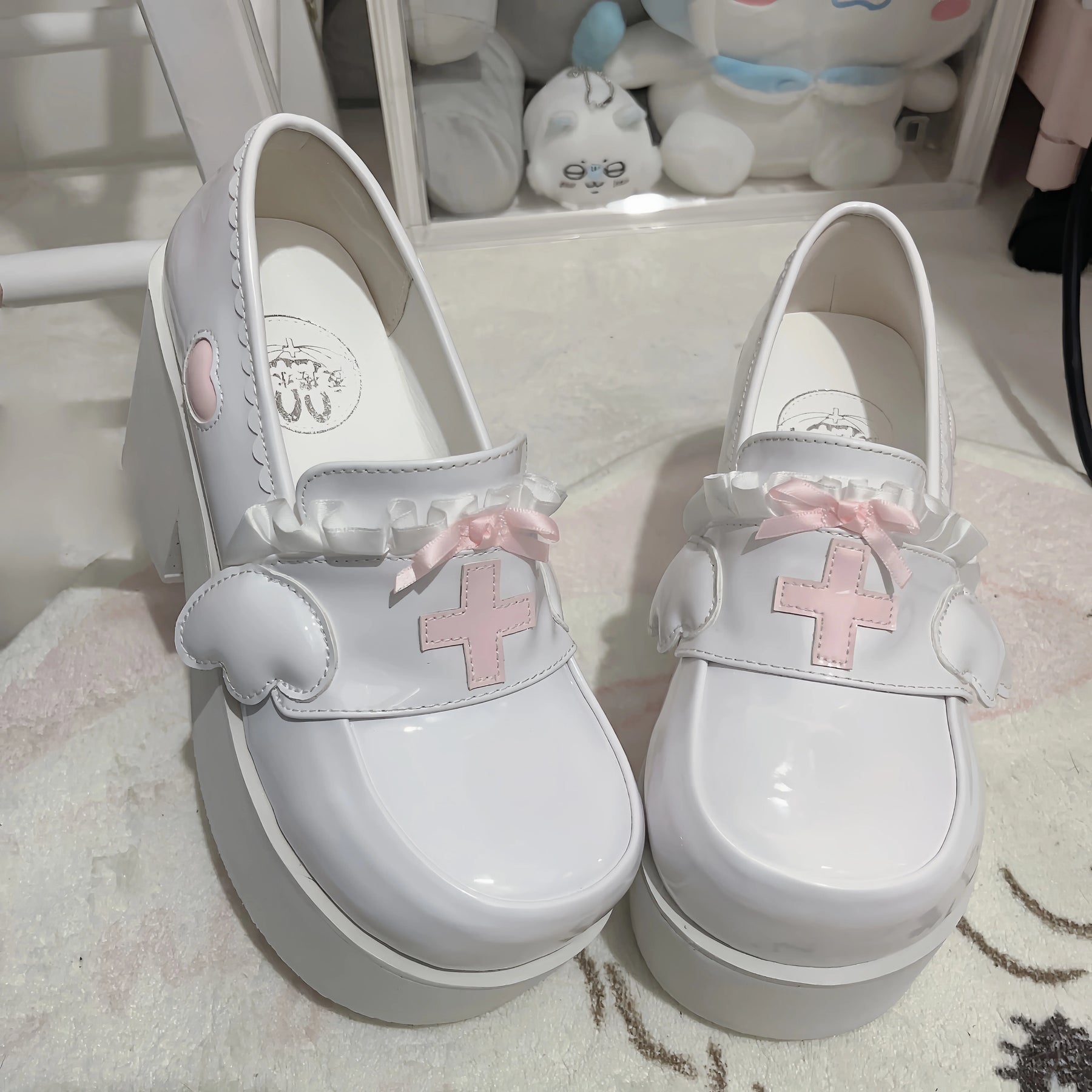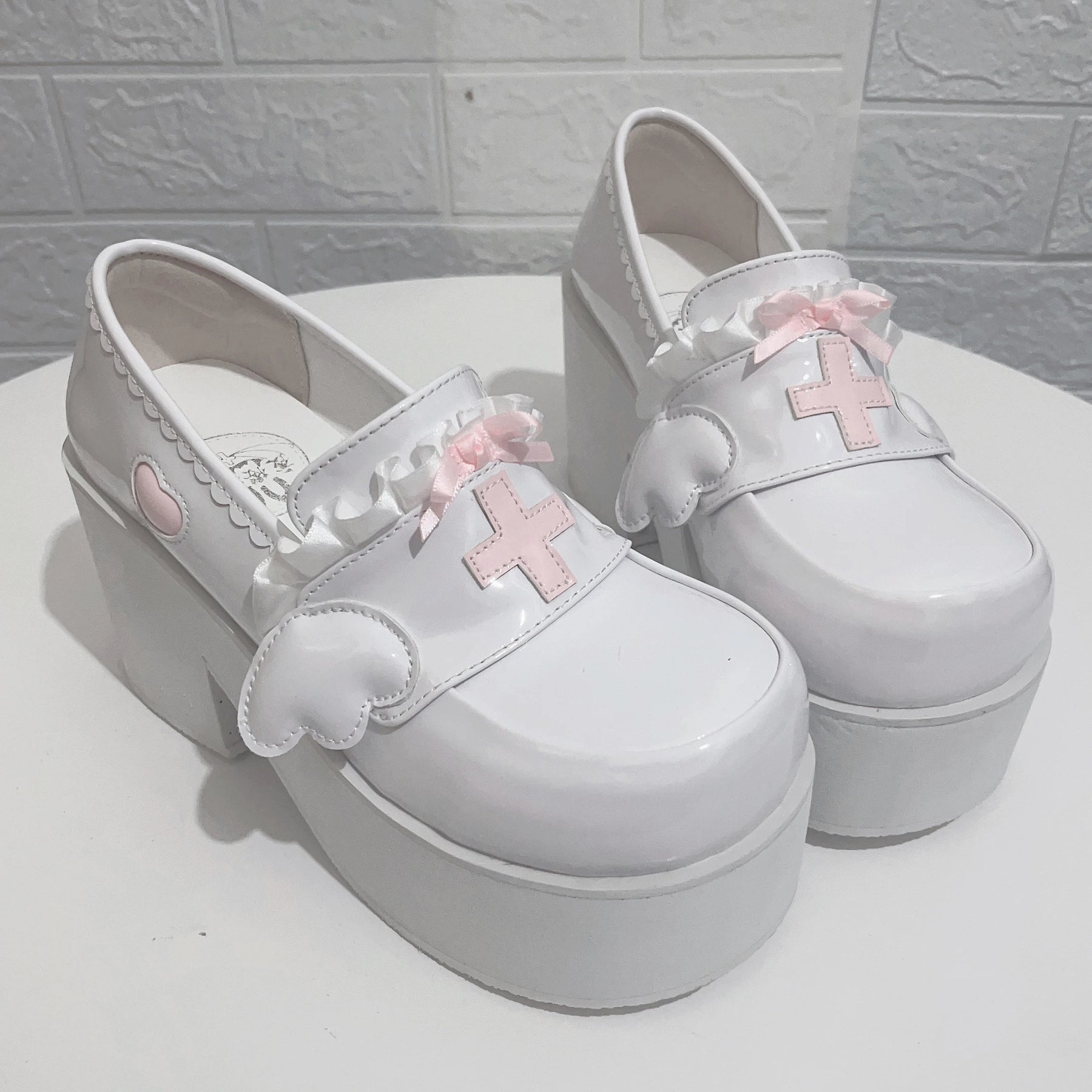 Chaussures Jirai Kei avec Croix Blancs Accents Roses Lolita