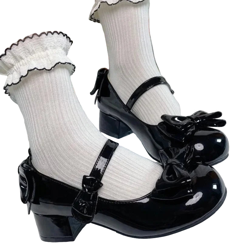 Chaussures Mary Jane Vernies Noires avec Nœuds Style Jirai Kei