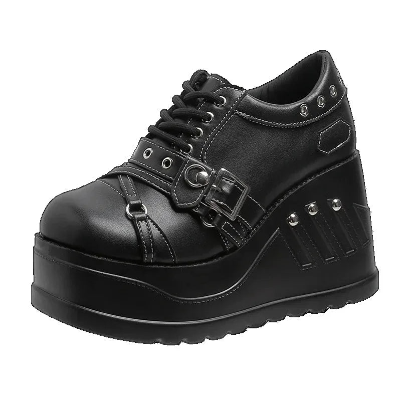 Chaussures Punk Rock noires avec clous, boucles et semelle épaisse