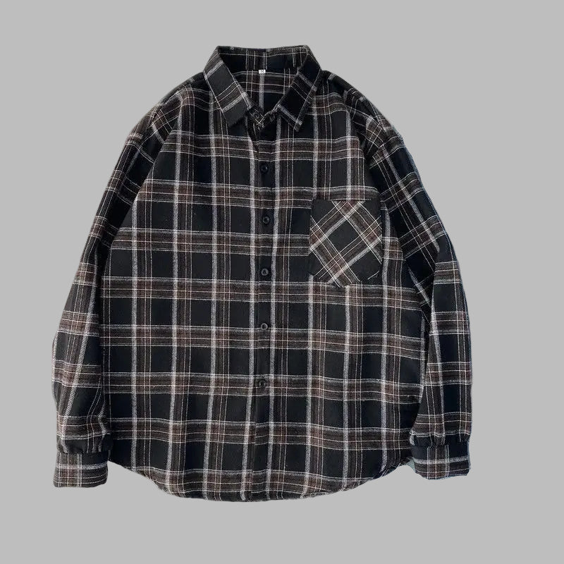 Chemise Noire à Carreaux Grunge Punk à Manches Longues
