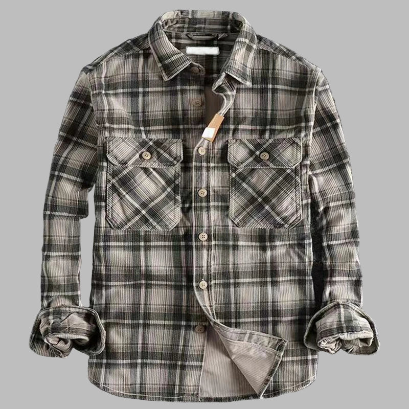 Chemise en flanelle à carreaux grise style grunge rock avec poches