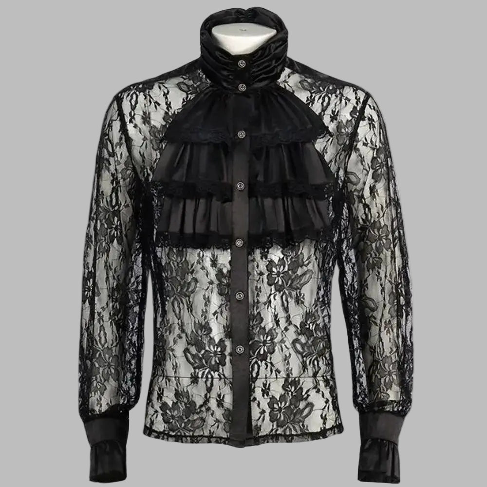 Chemise Gothique Homme Noire en Dentelle avec Jabot