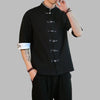Chemise Noire à Manches Courtes avec Boutons Rock