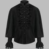 Chemise Noire Style Metal avec Jabots et Poignets en Dentelle 4XL
