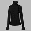 Chemise noire Goth Rock avec col haut et jabots Voir les options
