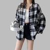 Chemise Oversize Grunge à Carreaux Noir et Blanc avec Poches
