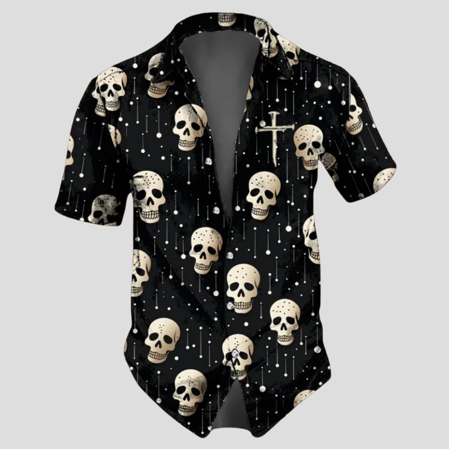 Chemise Punk Noire à Crânes et Croix Manches Courtes