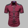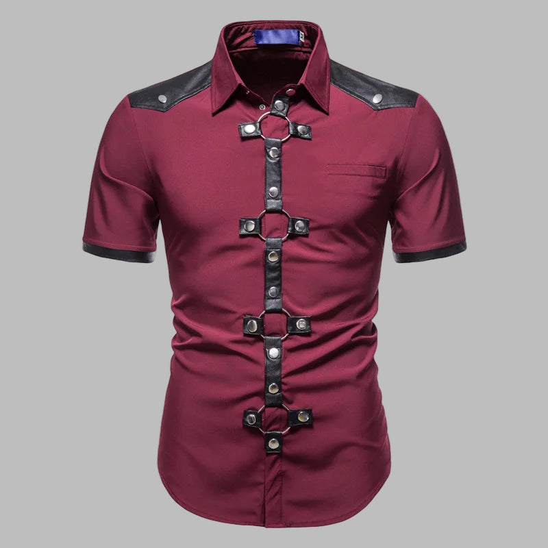 Chemise Steampunk à Courtes Manches avec Sangles en Cuir Bordeaux