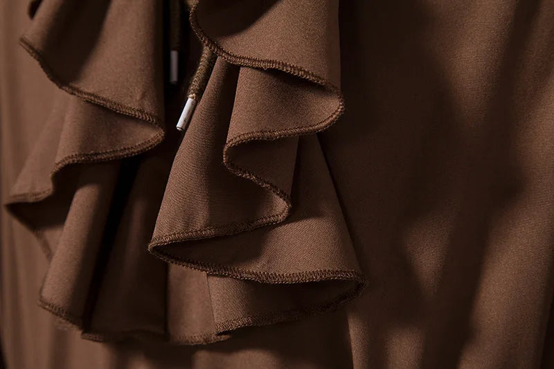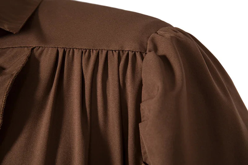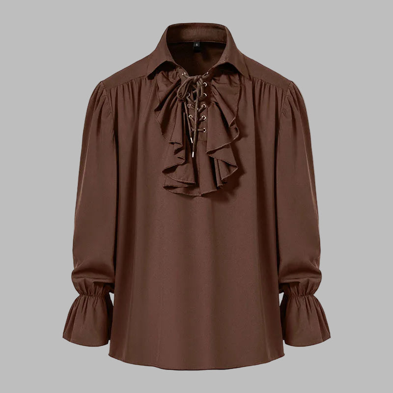 Chemise Steampunk Marron avec Jabots et Lacets Rétro