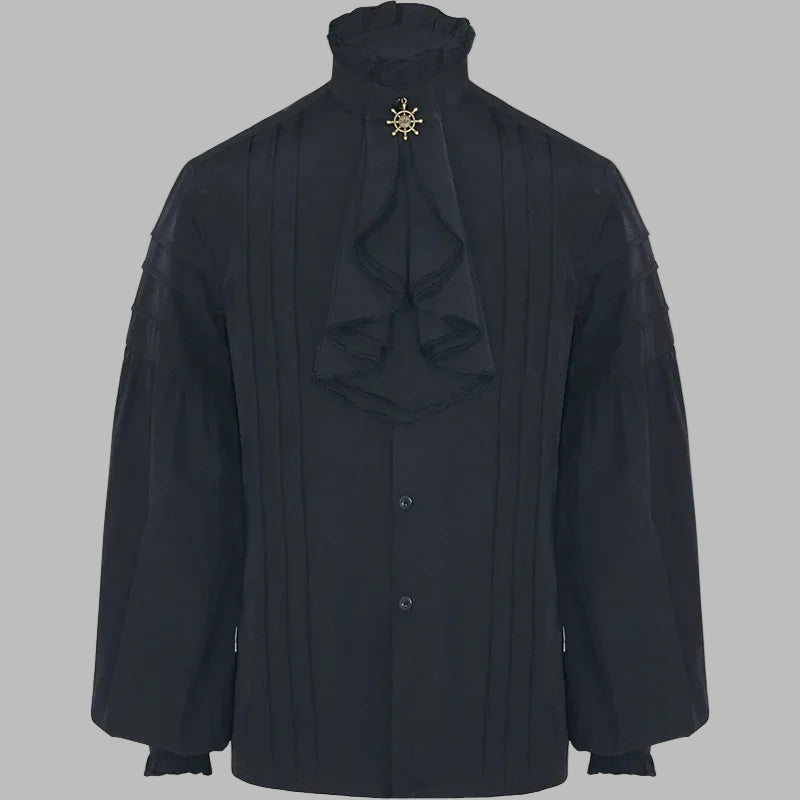 Chemise Steampunk Noire à Col Haut et Jabot