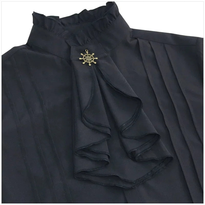 Chemise Steampunk Noire à Col Haut et Jabot Voir les options