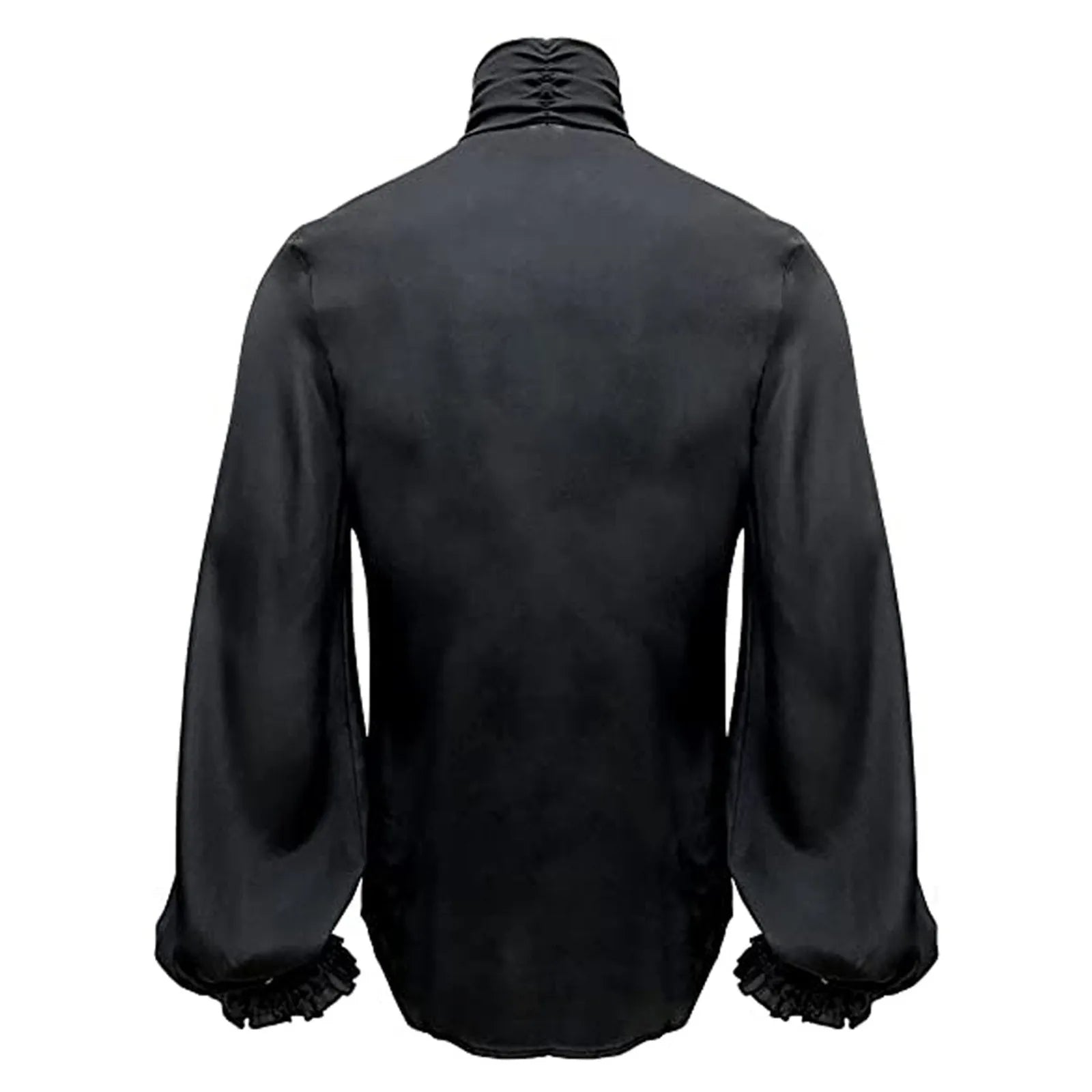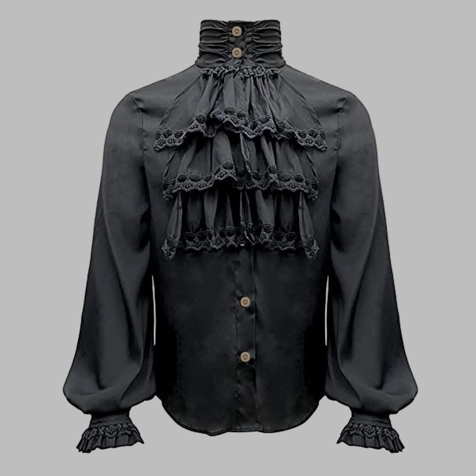 Chemise Steampunk Noire avec Volants en Dentelle et Col Haut XXL