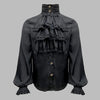 Chemise Steampunk Noire avec Volants en Dentelle et Col Haut