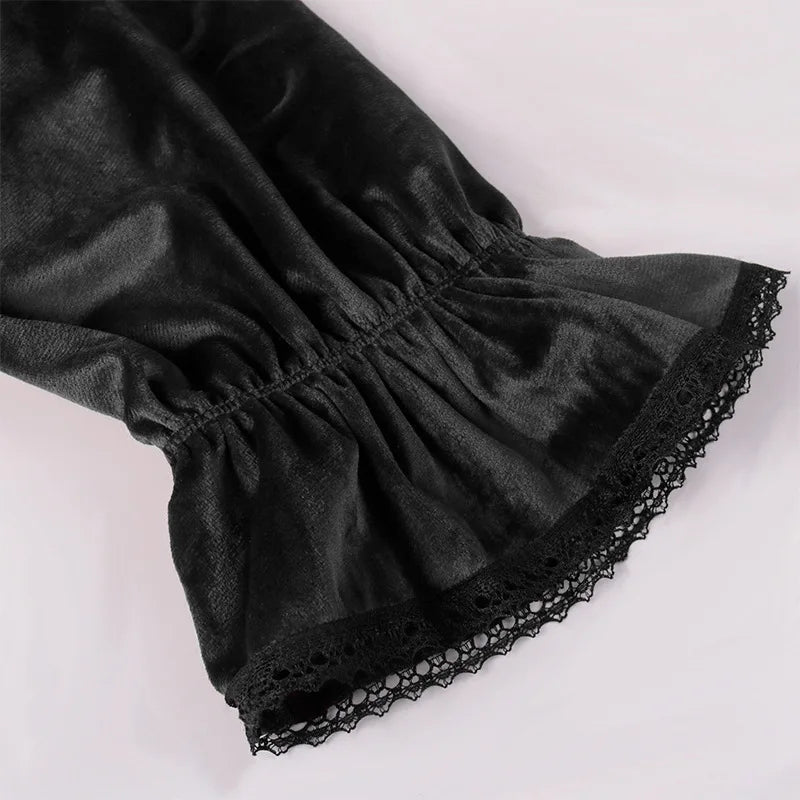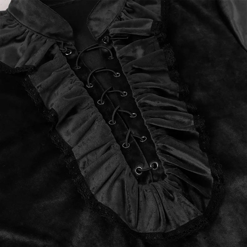 Chemisier Élégant Noir Metal avec Jabots et Lacets