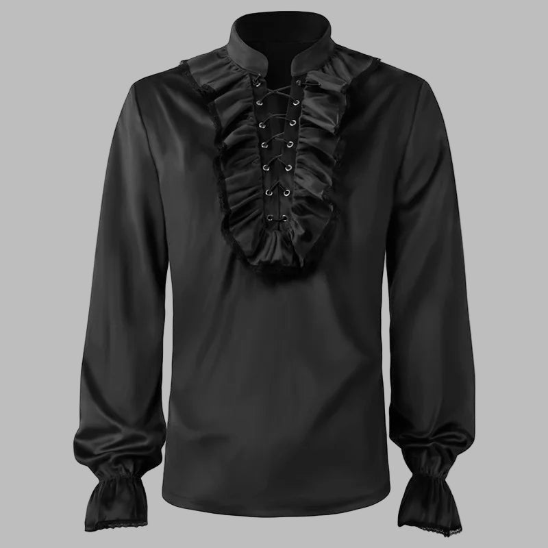 Chemise Élégante Metal Noire avec Jabots et Lacets