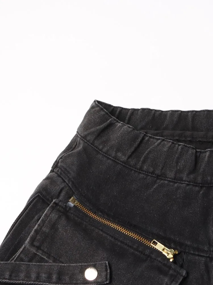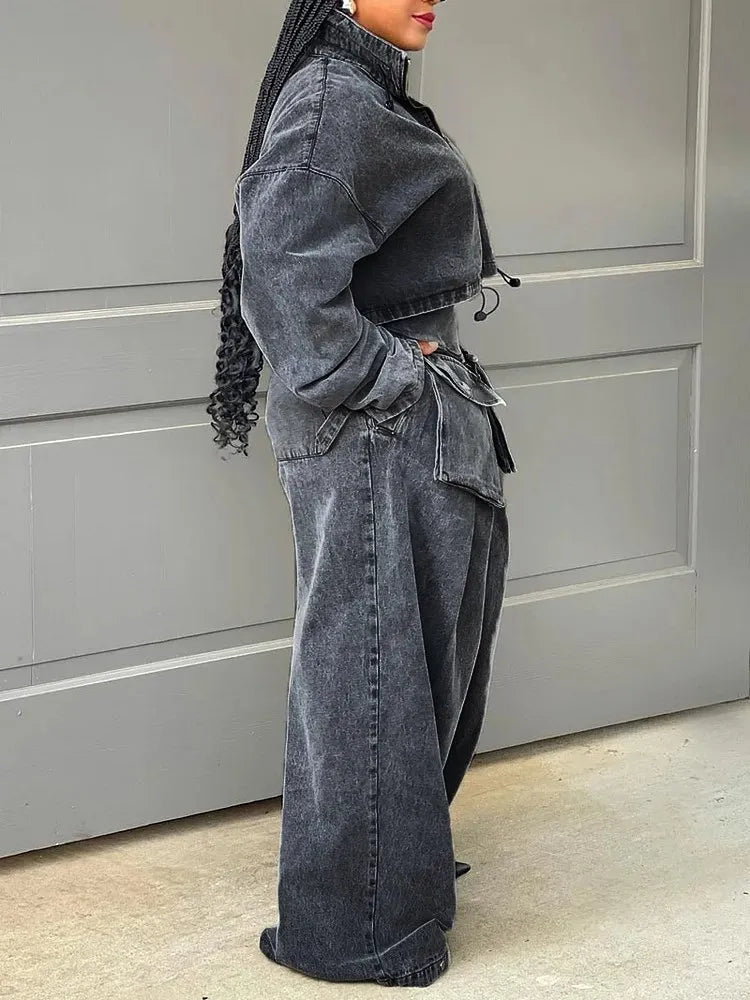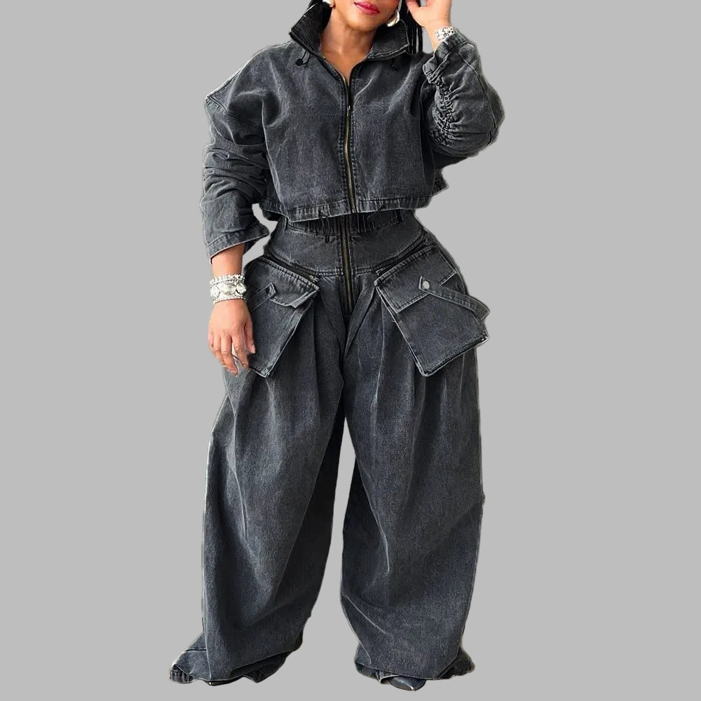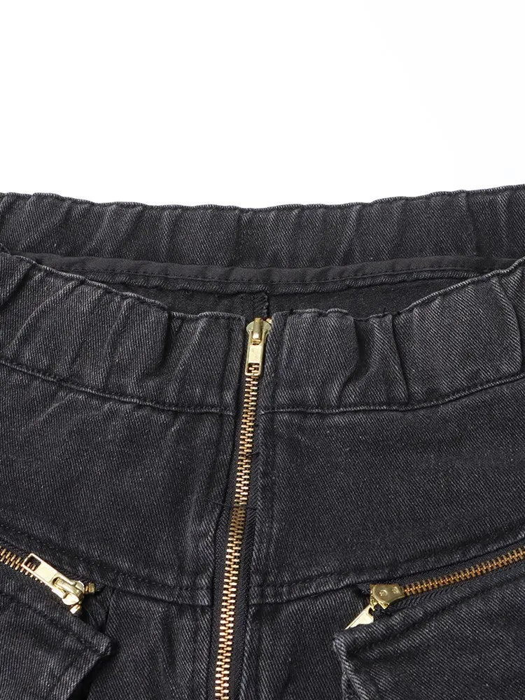 Combinaison Grise en Jean Style Punk avec Poches Cargo
