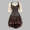 Corset en Cuir Steampunk avec Boucles et Jupe en Dentelle