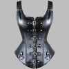 Corset gothique noir en cuir avec fermeture éclair et sangles à boucles