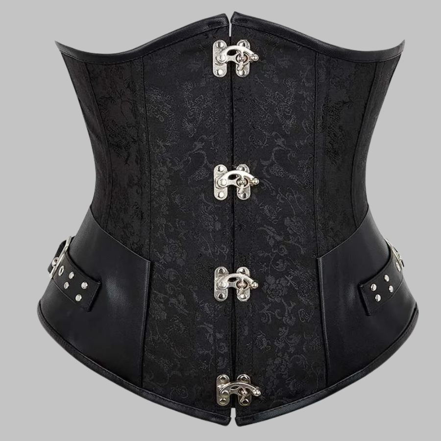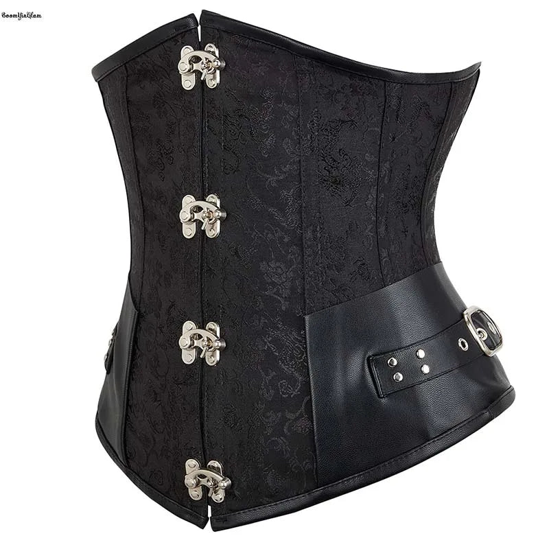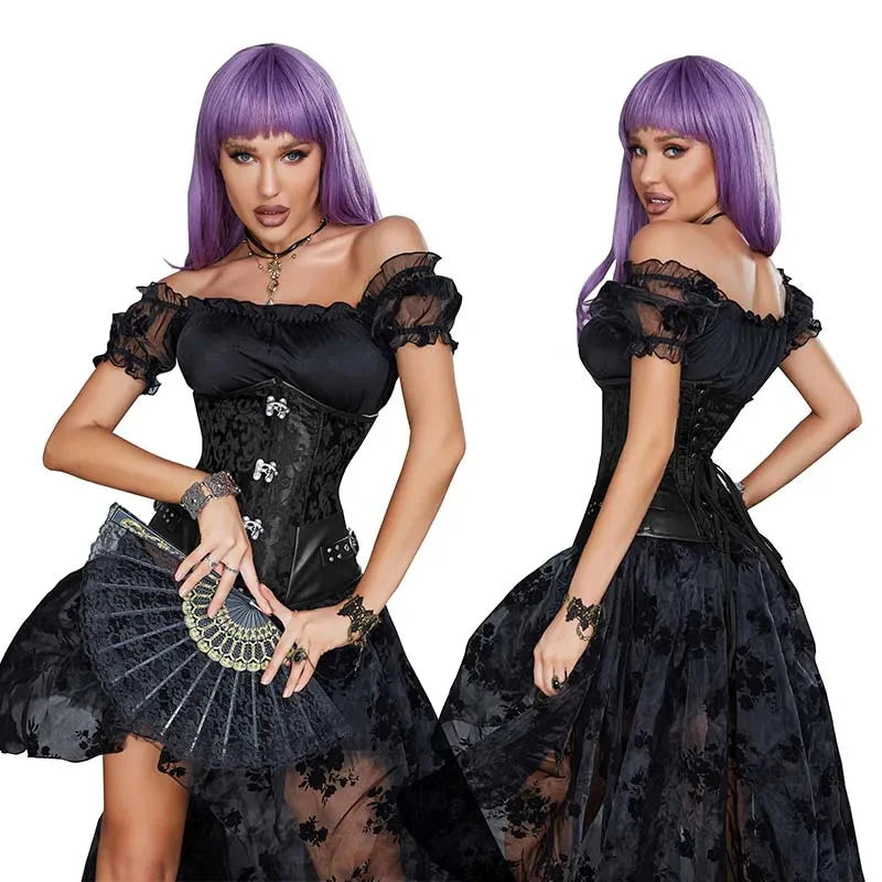 Ce corset steampunk sous-poitrine au design audacieux sculpte parfaitement la silhouette avec caractère. Équipé de 12 baleines en acier, il offre un maintien solide et un effet amincissant à la taille. Idéal pour les événements, les sorties nocturnes, le cosplay ou comme accent fort dans une tenue quotidienne. String assorti inclus.