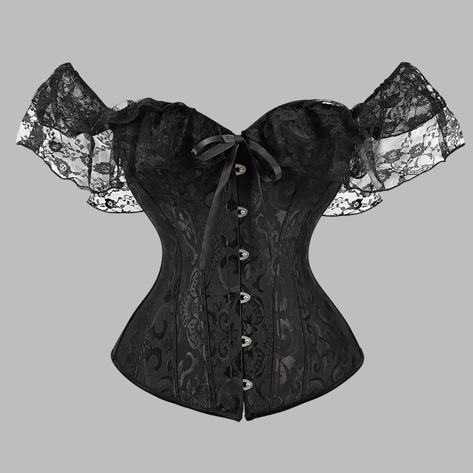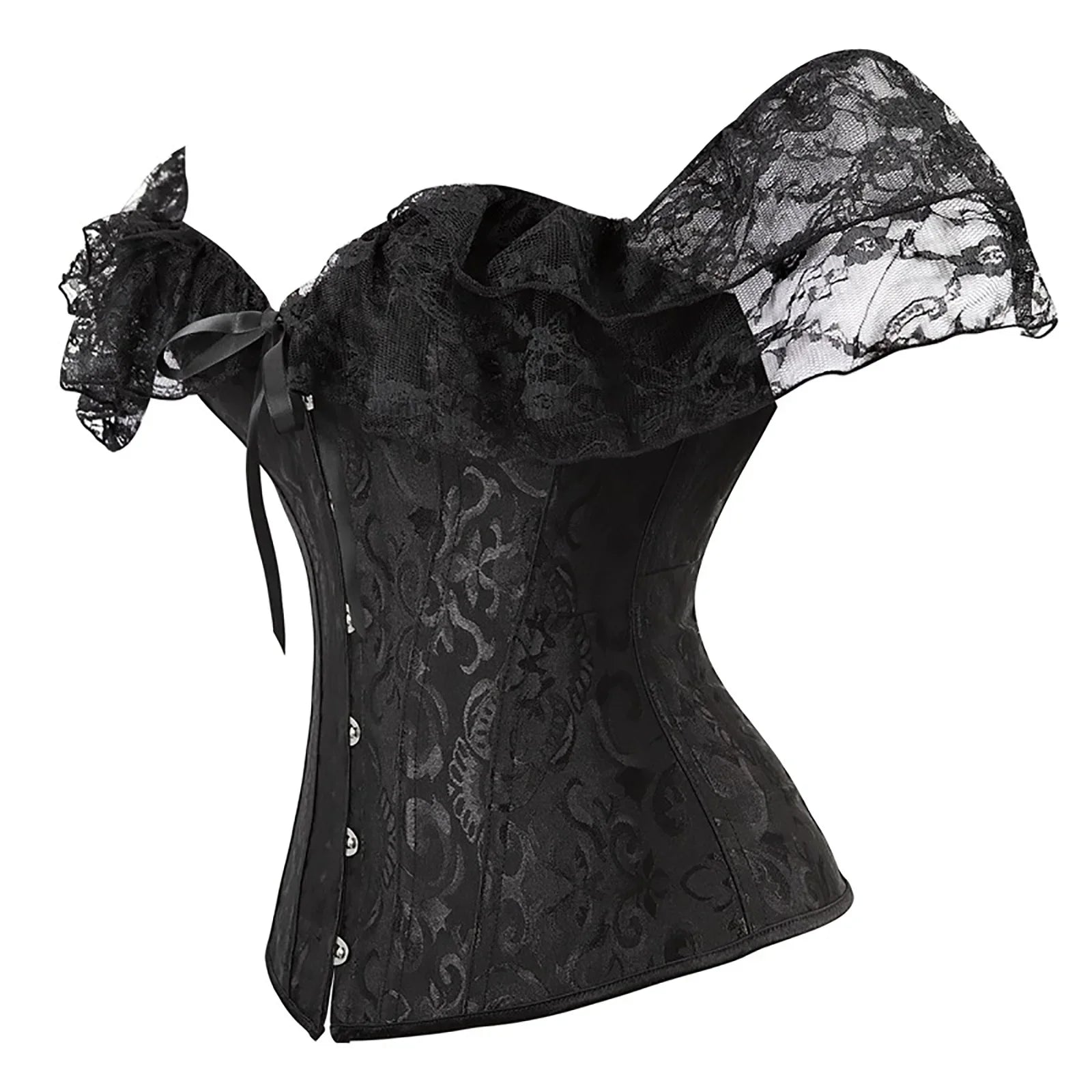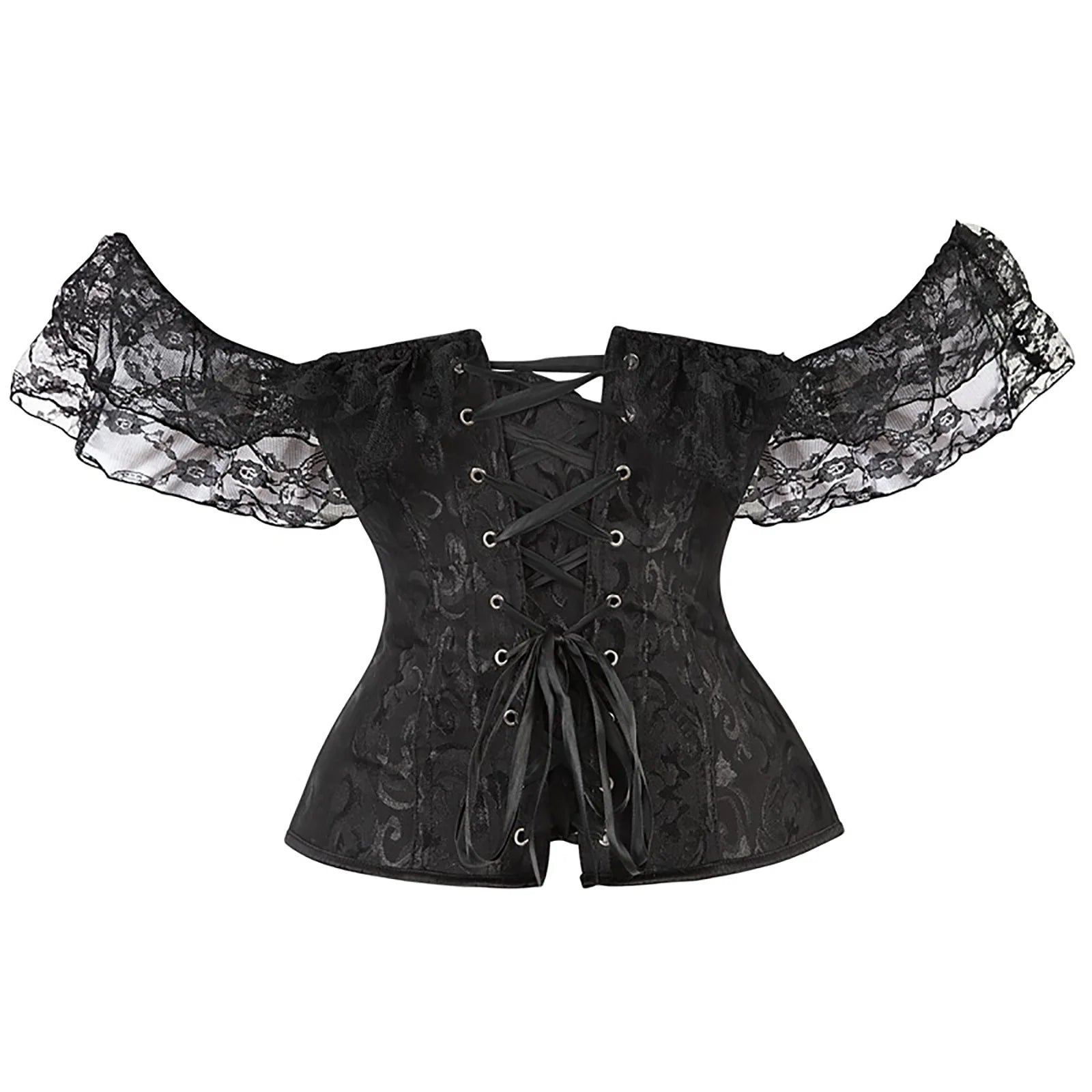 Corset gothique punk rock noir en brocart avec manches en dentelle et laçage