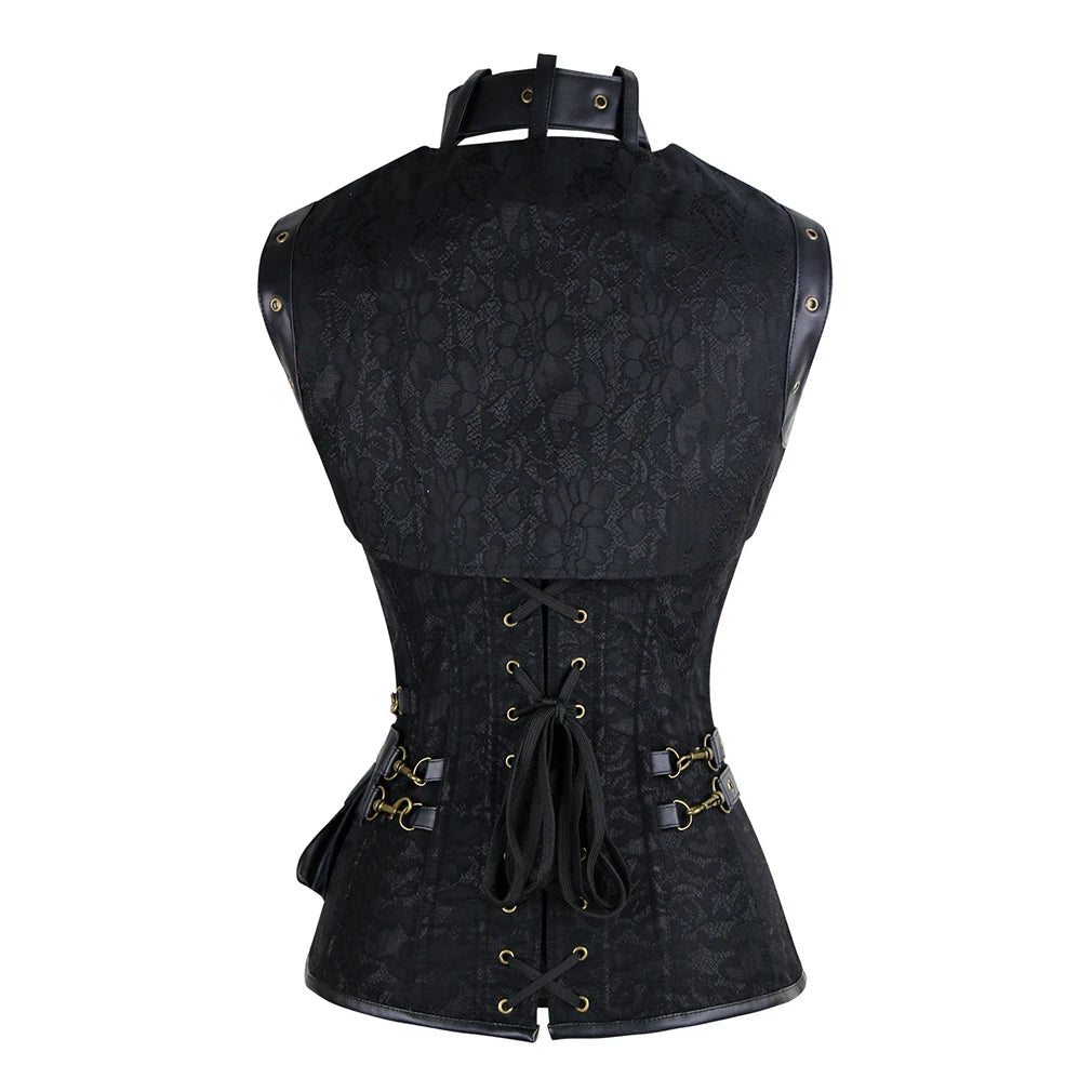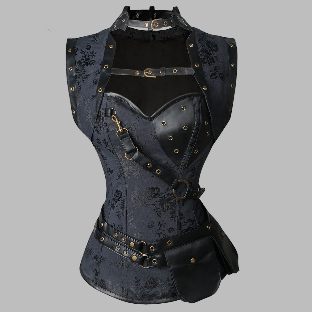Corset gothique steampunk à motif floral avec sangles en cuir