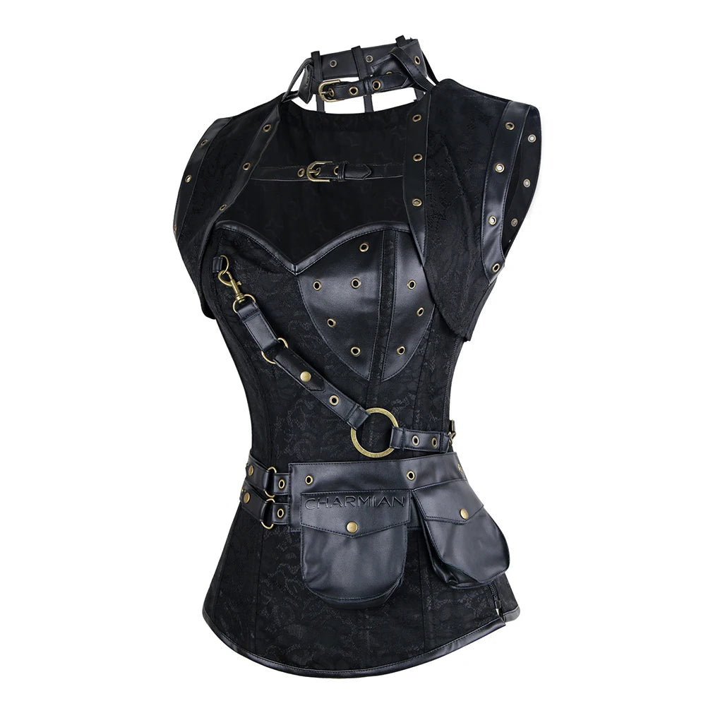 Corset gothique steampunk à motif floral avec sangles en cuir Voir les options