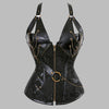 Corset gothique steampunk avec chaînes et fermetures éclair, quincaillerie métallique, noir
