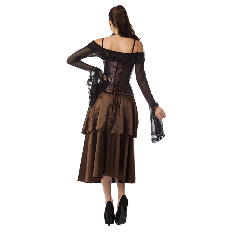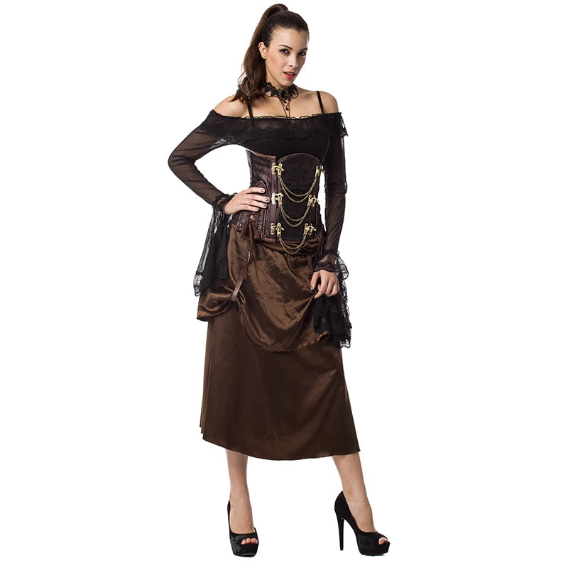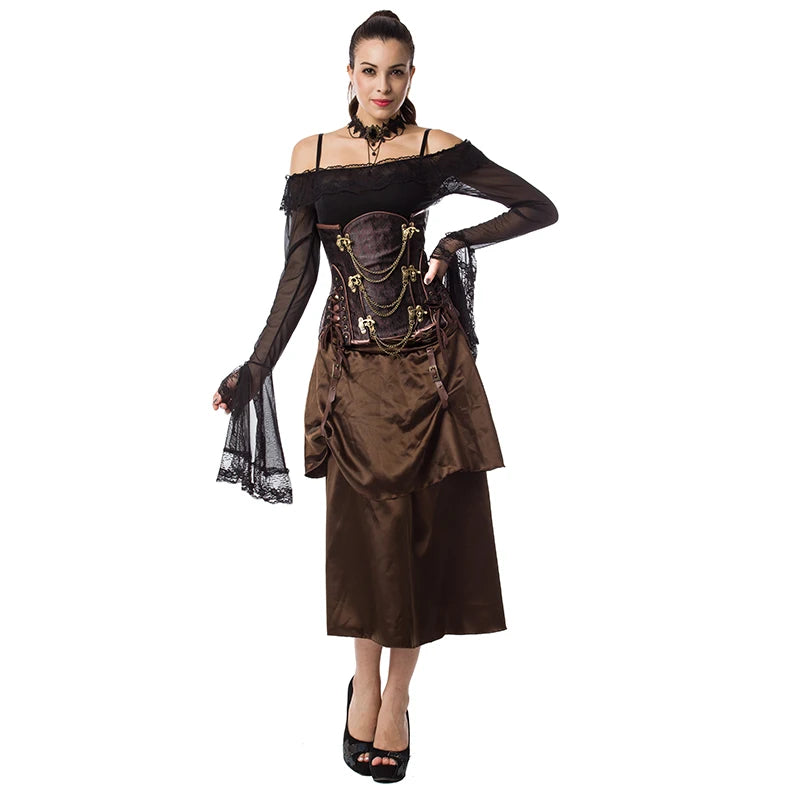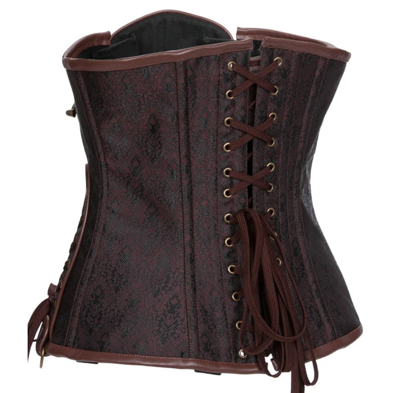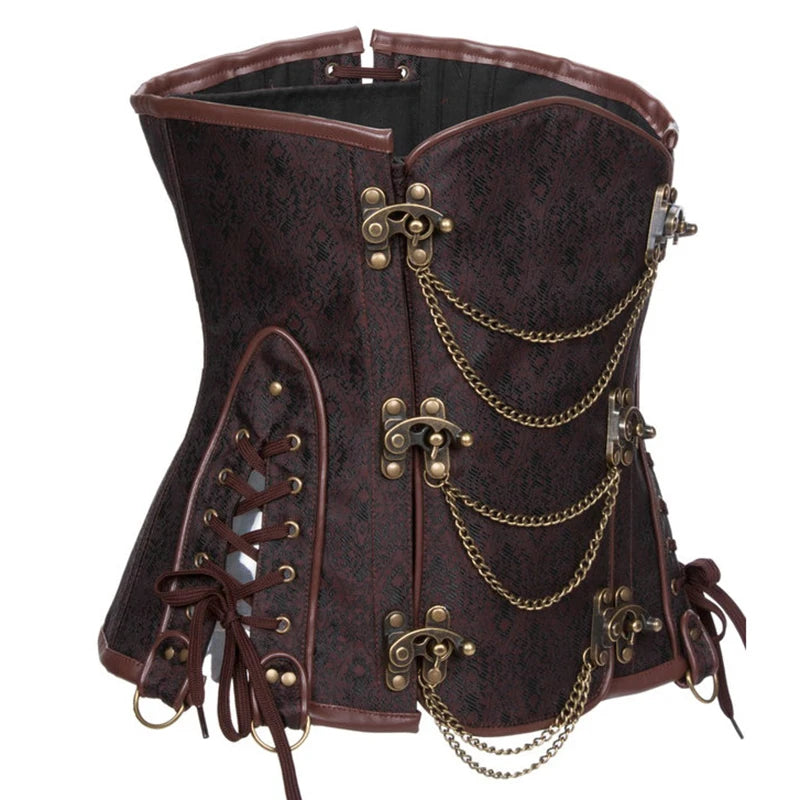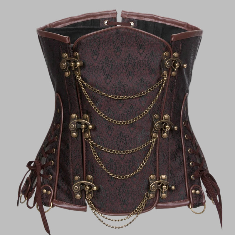 Corset gothique steampunk marron avec chaînes et boucles en laiton
