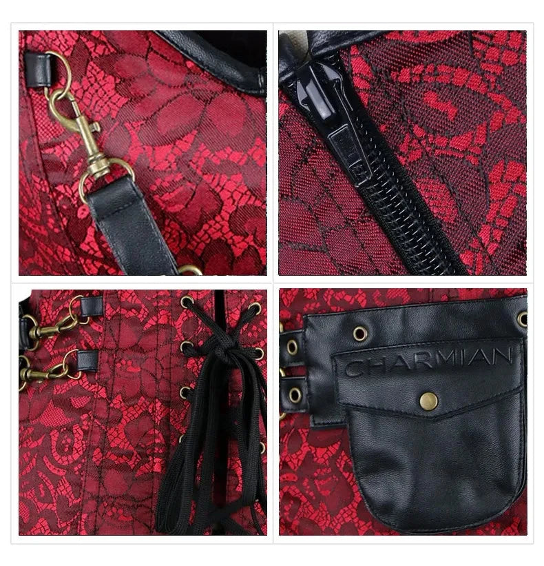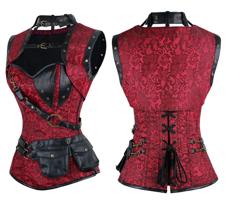 Corset Punk avec Maille Rouge et Crânes Noirs