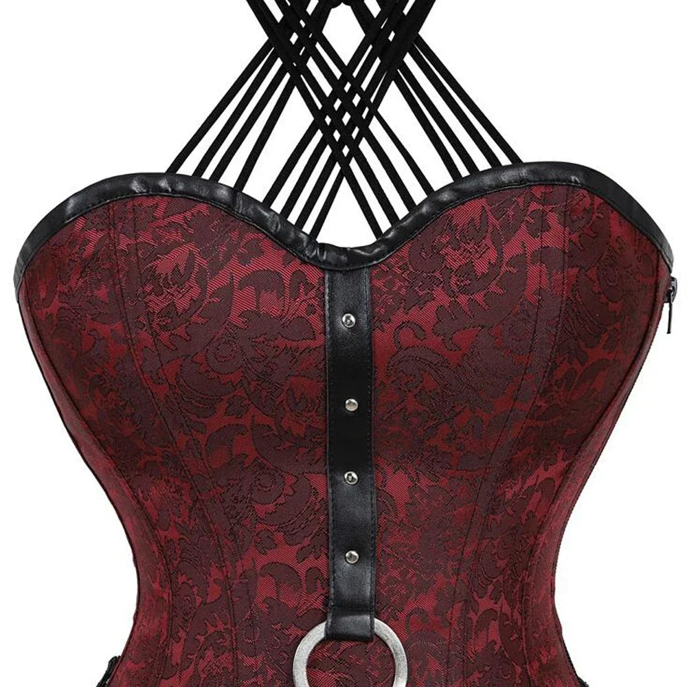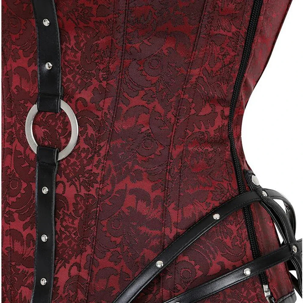 Corset Punk Rock avec Bretelles et Boucles Métalliques Bordeaux Voir les options
