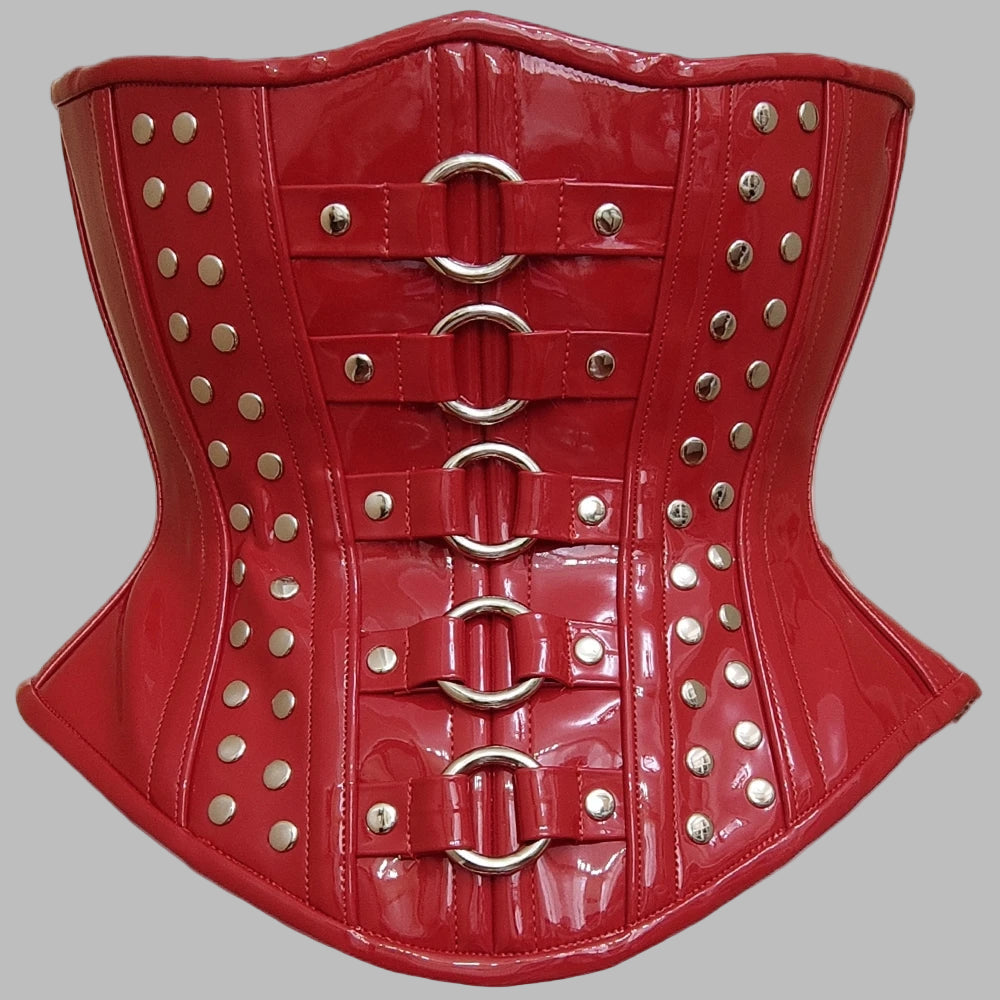 Corset Punk Rock Rouge avec Clous et Anneaux Métalliques