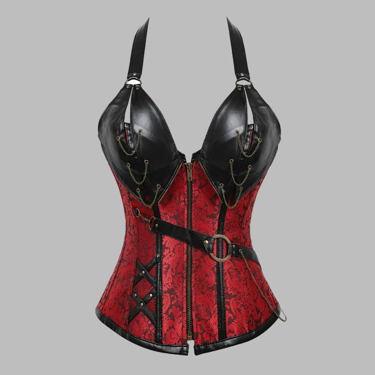 Corset Rouge Punk avec Éléments en Cuir Noir